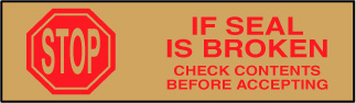STOP IF SEAL IS BROKEN TAPE - TAN TAPE WITH RED PRINT